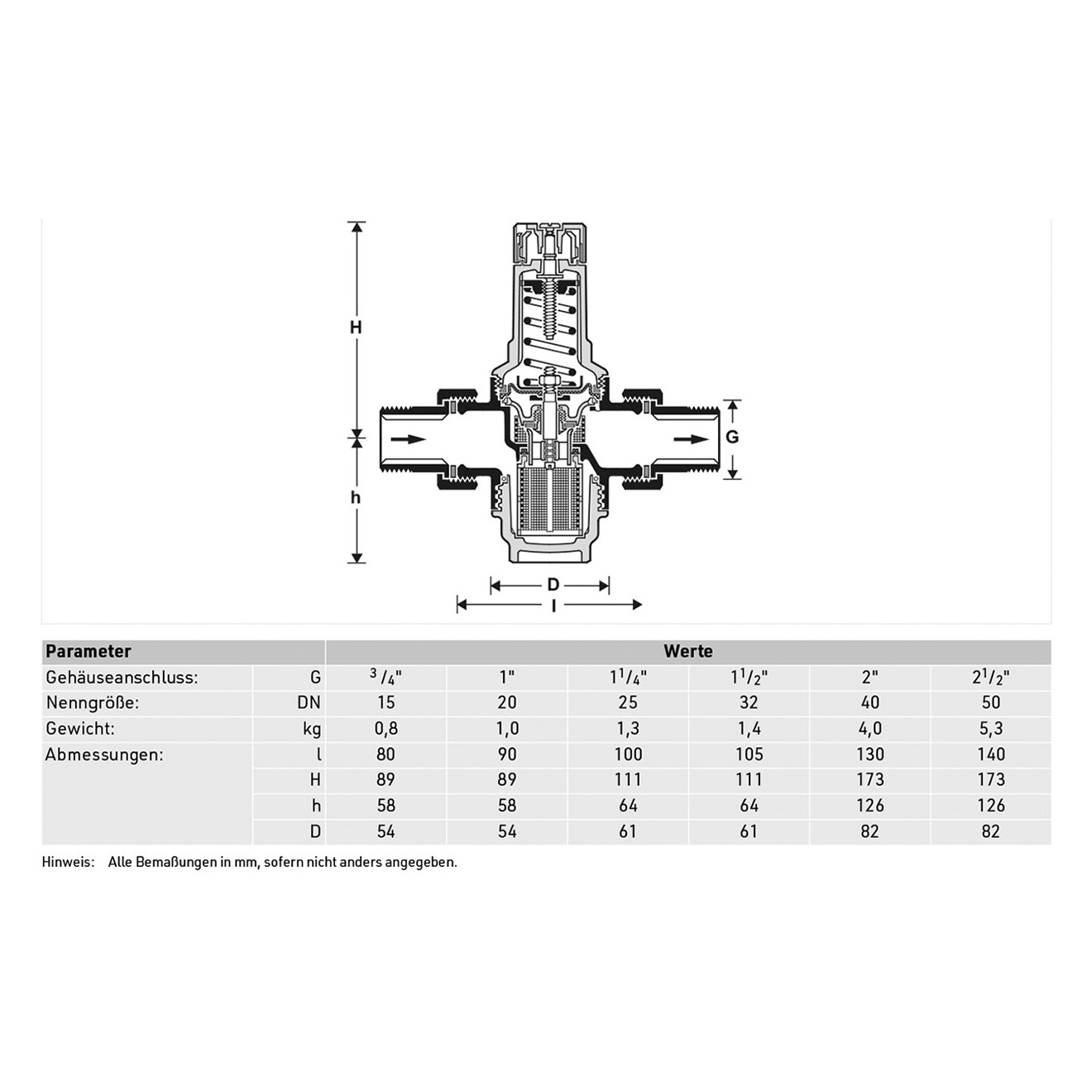 Bitte beachten Sie, dass der Druckminderer nicht für Dampf oder Gase geeignet ist. Die angegebenen Werte sind maximale Grenzwerte, und die tatsächlichen Einsatzbedingungen können die zulässigen Werte beeinflussen.