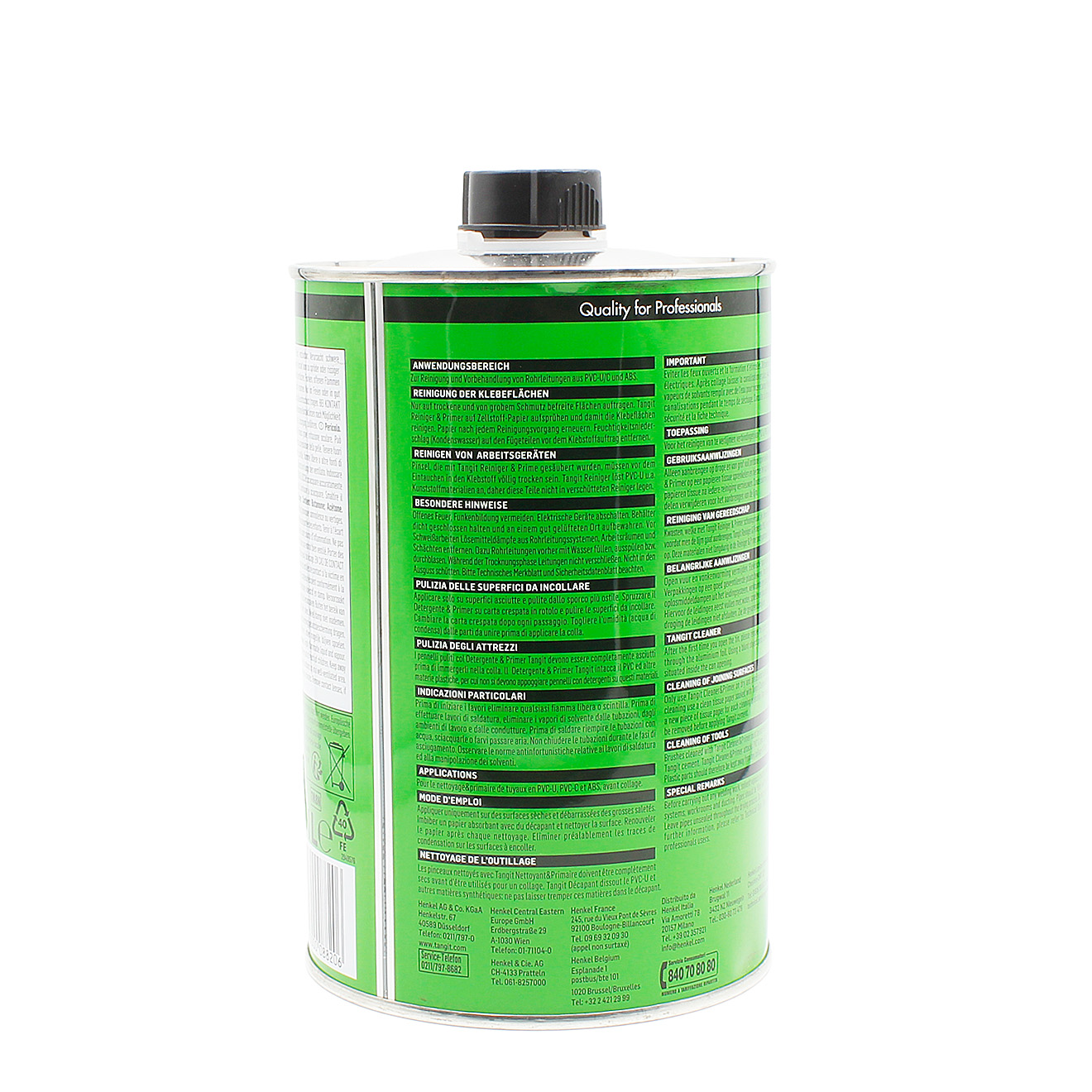 Der Tangit Reiniger & Primer ist ein speziell entwickelter Reiniger für die Vorbereitung von Klebeverbindungen aus PVC-U, PVC-C und ABS. Er entfernt Fett, Schmutz und andere Verunreinigungen von den Oberflächen und sorgt so für eine optimale Haftung beim Verkleben. Besonders geeignet für Druckrohrleitungssysteme nach DIN EN 14814 und drucklose Rohrleitungssysteme nach DIN EN 14680.