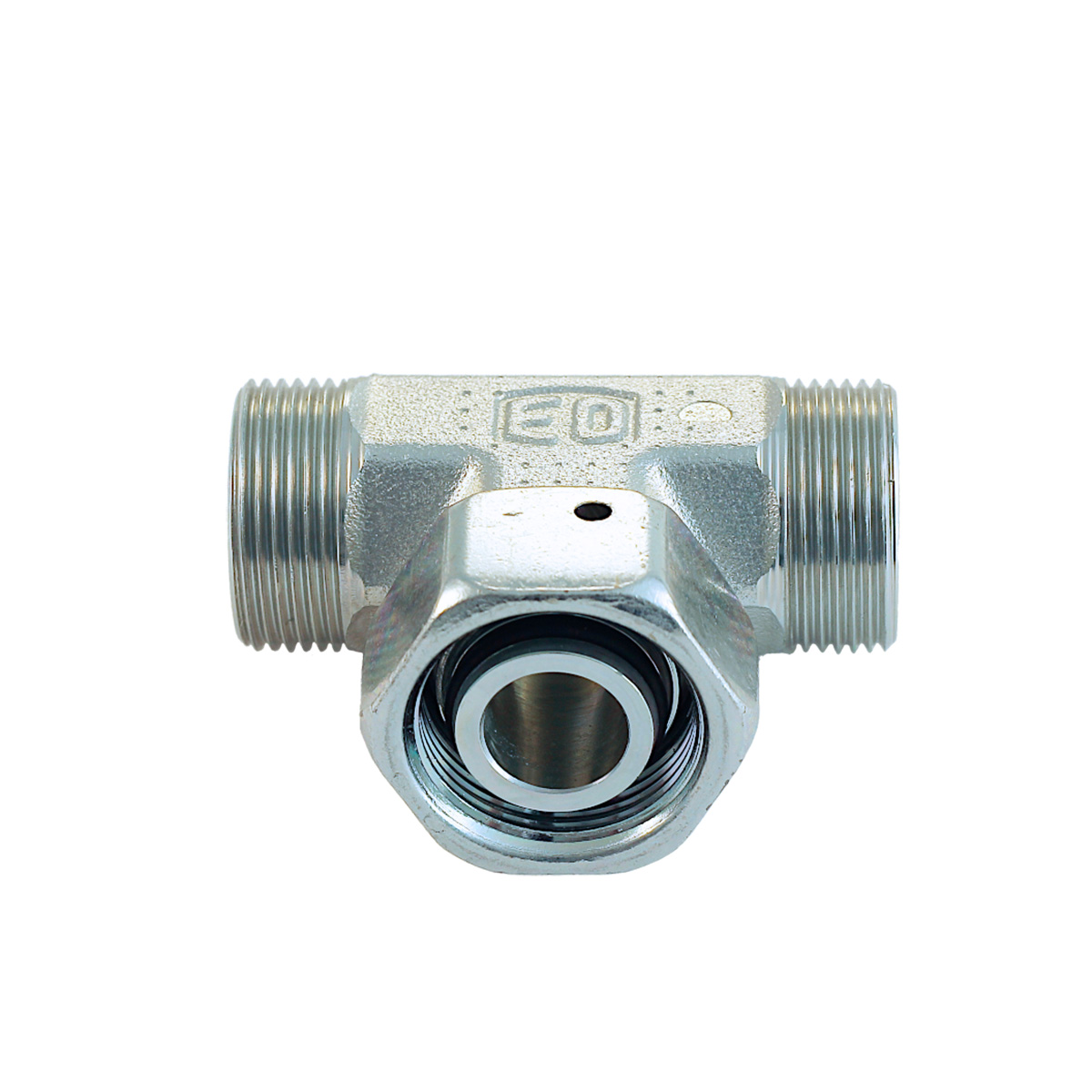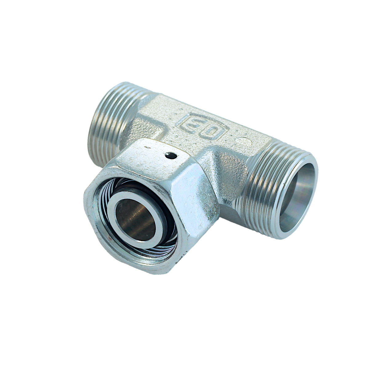 Parker Ermeto 24° ET T-Stutzen mit Dichtkegel, 38 mm, schwere Baureihe, nur Verschraubungskörper, ohne Überwurfmutter und Schneidring, Elastomerdichtung NBR, Stahl verzinkt