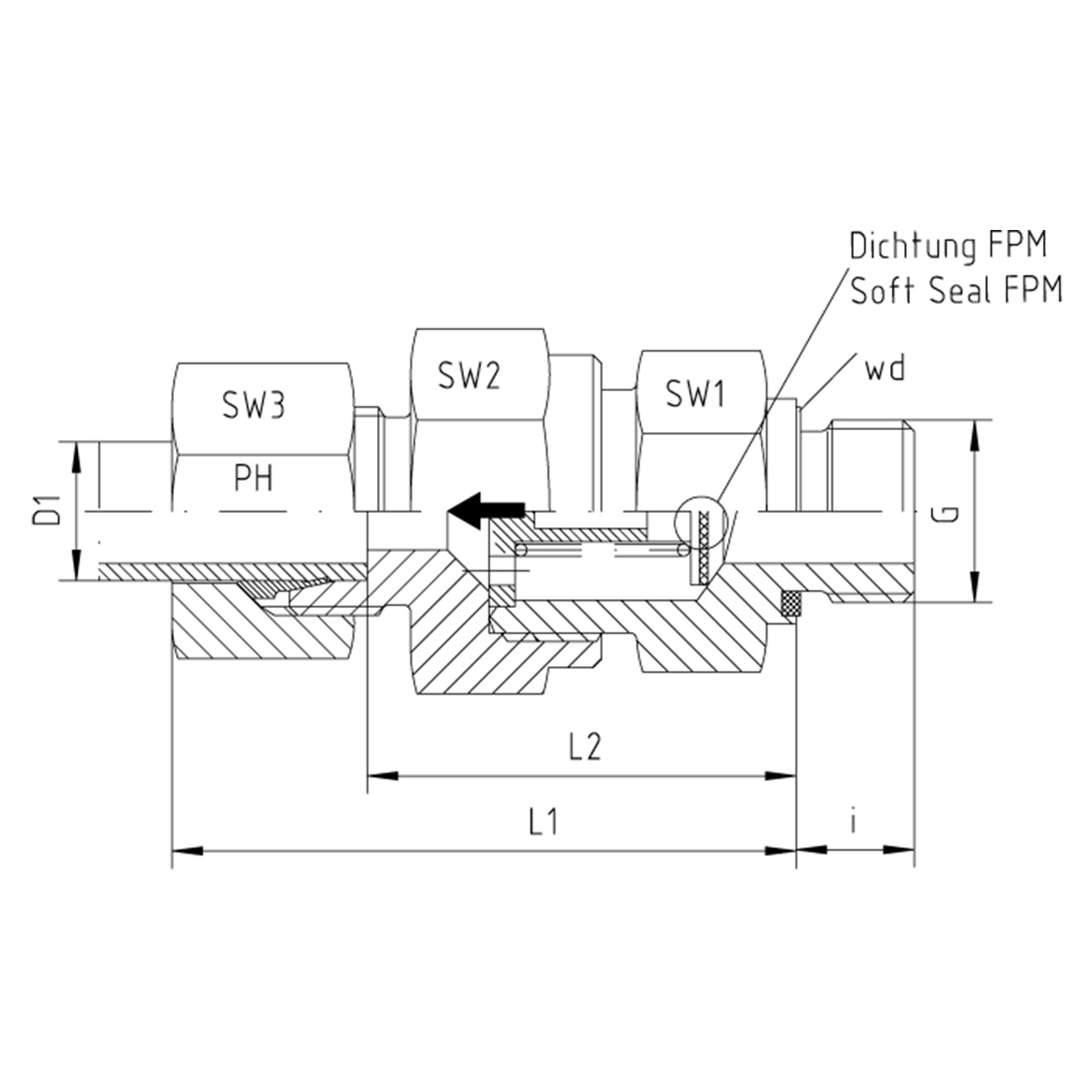 Rückschlagventil L-8mm G1/4" weichdichtend 1.4571