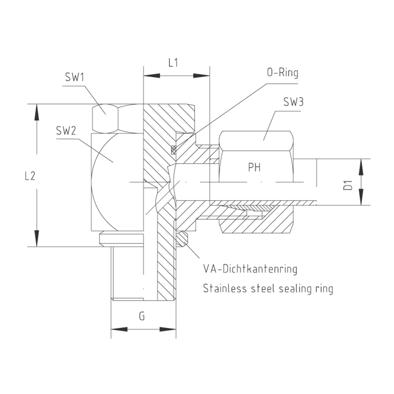Winkel-Schwenkverschraubung L-06 x G1/8" 1.4571